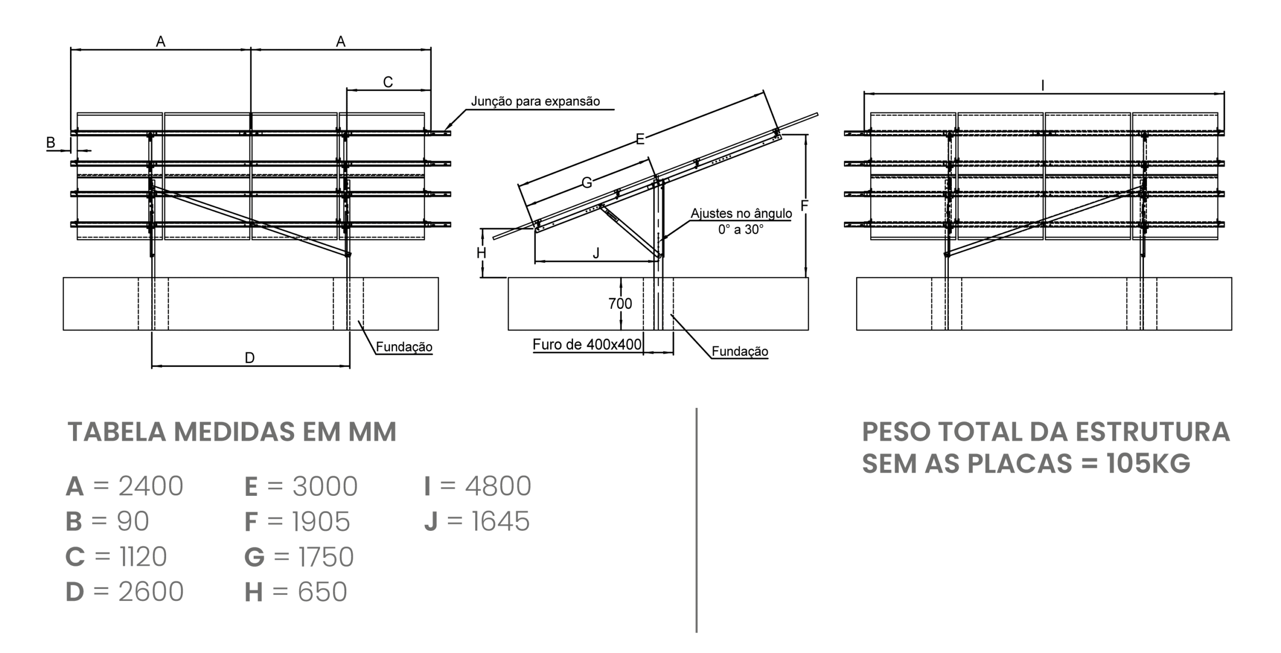 • Estrutura em aço 1020 e galvanizado a fogo.